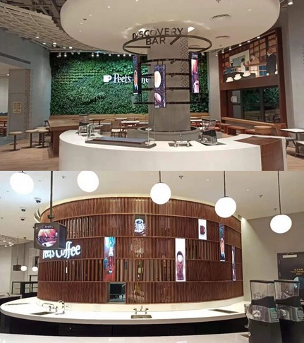 xkty.com星空为皮爷咖啡量身打造不同规格的展示屏,在满足功能的基础上打造时尚优雅的环境氛围。